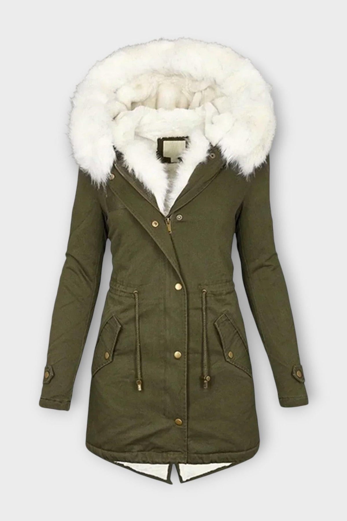 Seznamte se s Aisha zimním kabátem, který má podšívku z umělé kožešiny – dokonalá kombinace módního designu a maximálního pohodlí pro chladné zimní dny.