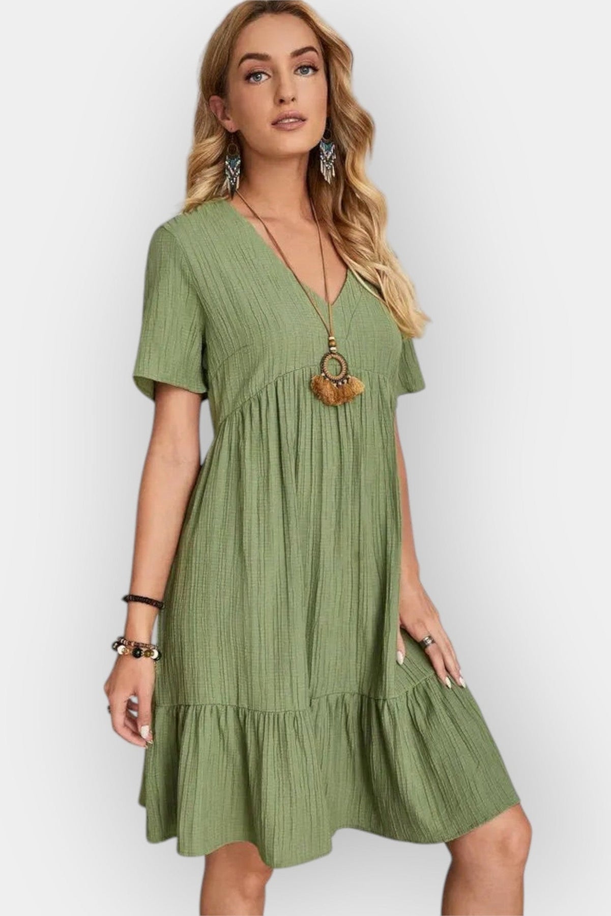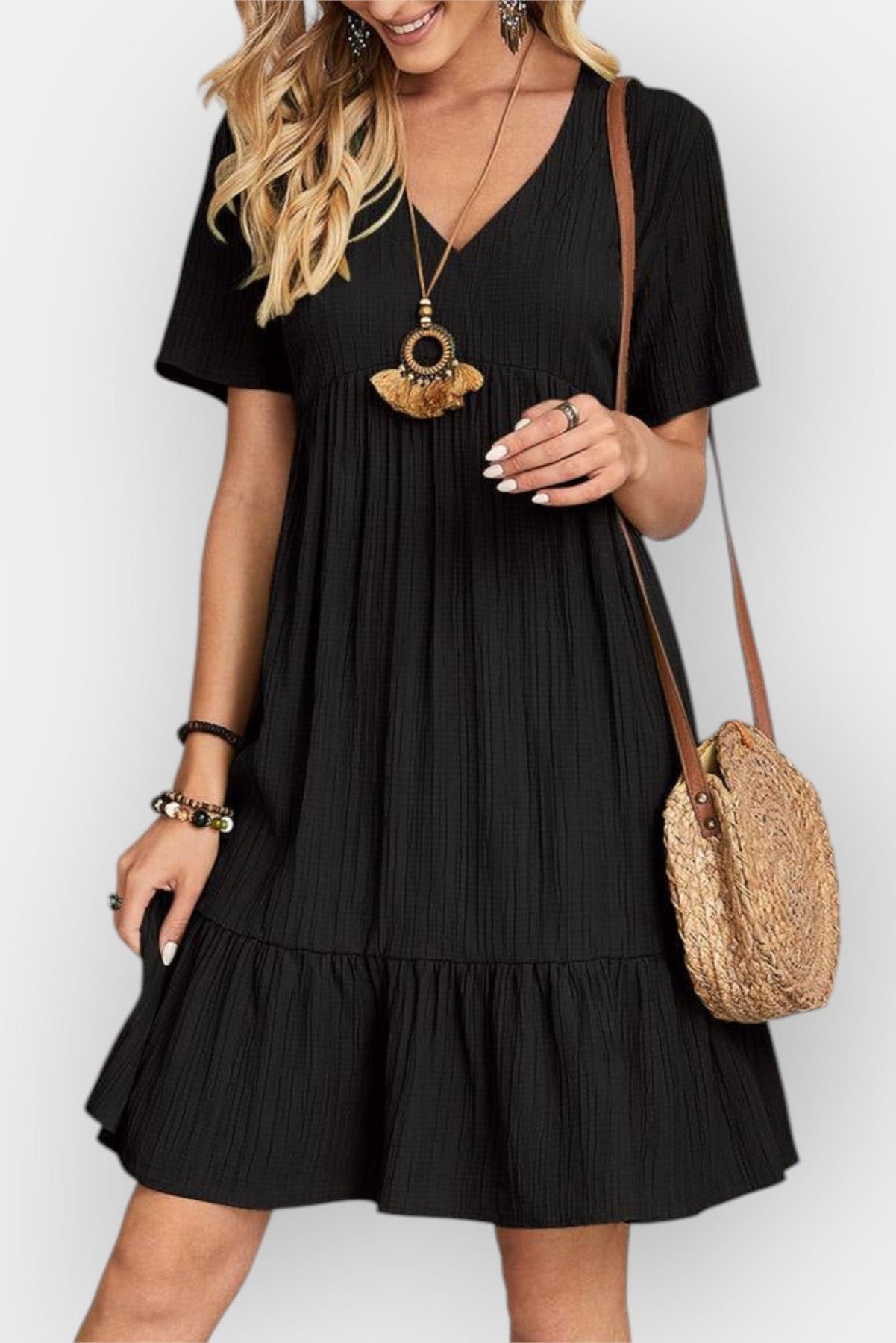Seznamte se s elegantními šaty, které spojují minimalistický střih a nadčasový styl. Šaty vyrobené z lehké tkaniny a s ženským V výstřihem se hodí do každé situace – do kanceláře i na večerní akce.