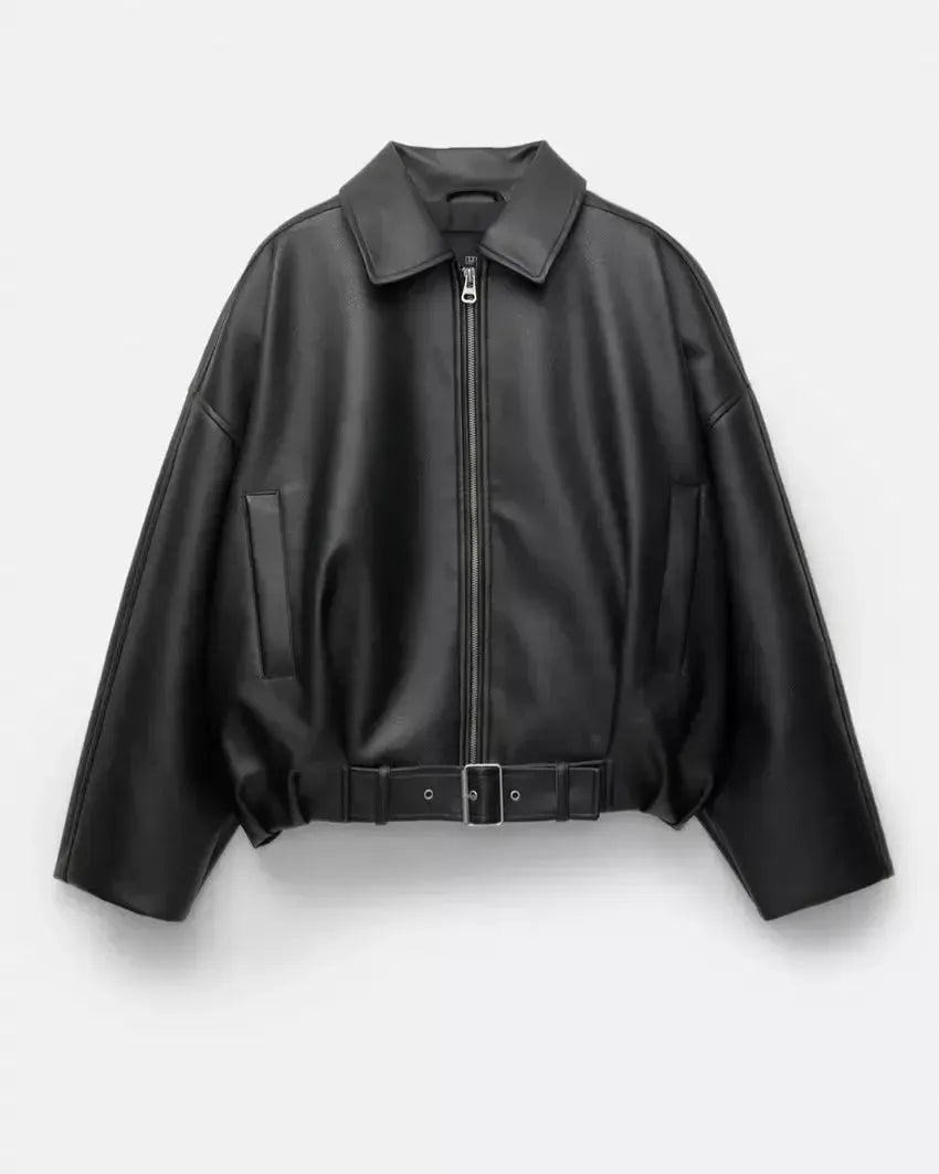 Arvella je dokonalou volbou pro moderní a luxusní vzhled. Oversize silueta z veganské kůže vytváří silný dojem, zatímco pásek na úrovni pasu dodává tvar a rovnováhu. Zip, elegantní límec a minimalistické kapsy udržují design přehledný – ideální k džínům, šatům nebo kalhotám.