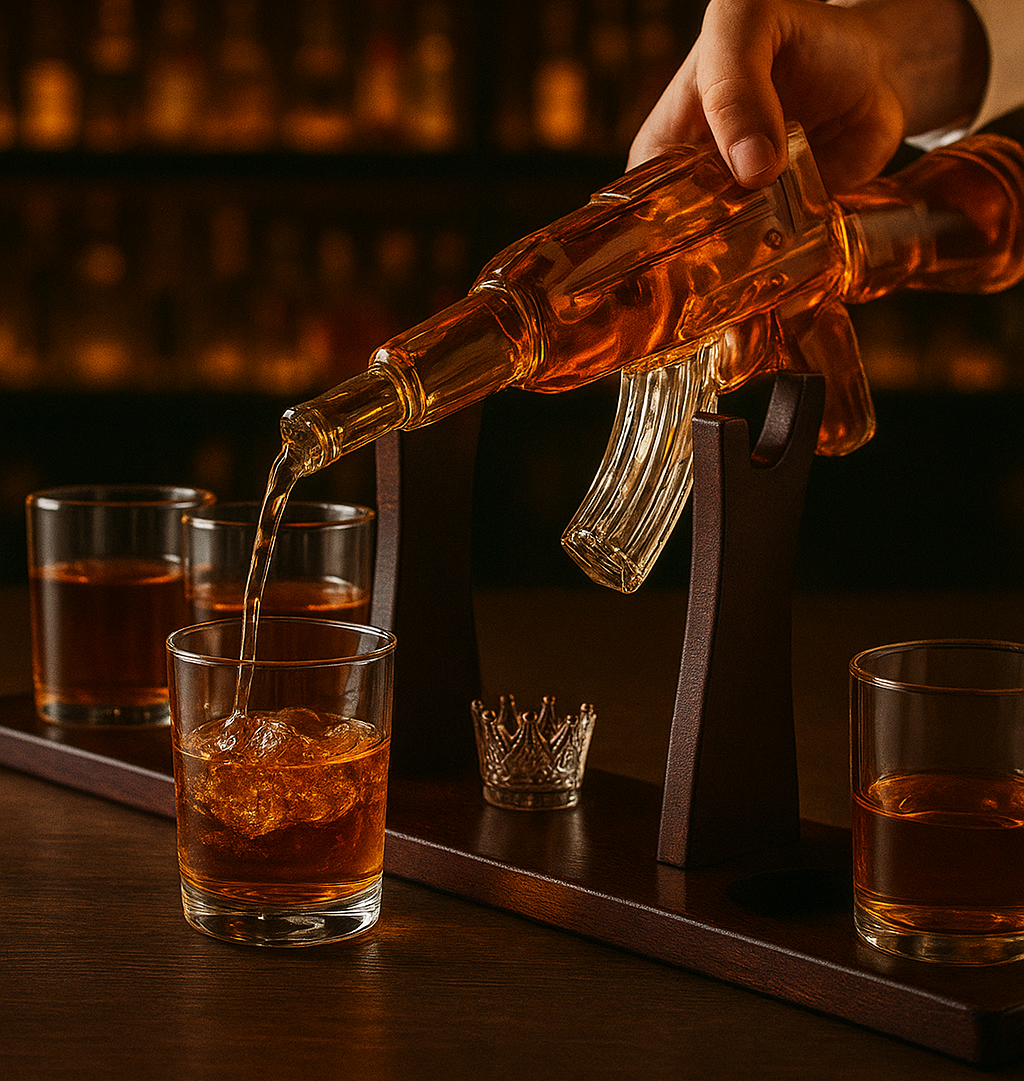 Připravte se na pořádnou dávku stylu s touto exkluzivní karafou ve tvaru legendární AK-74.