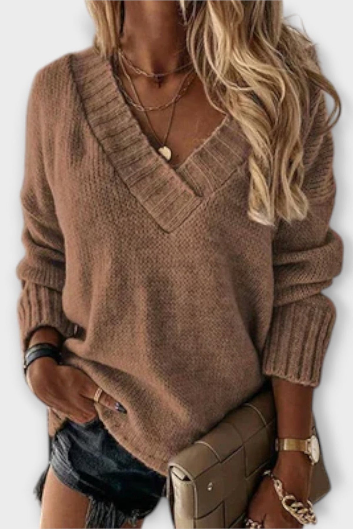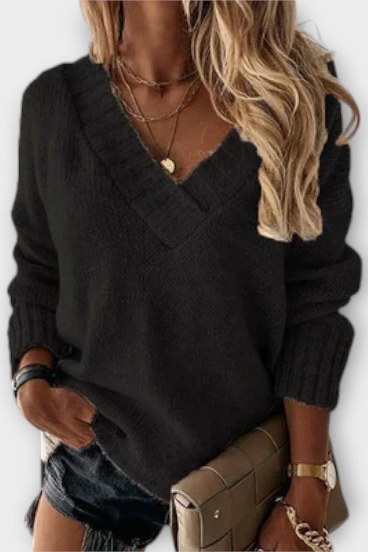 Najděte dokonalého společníka na chladné dny: pohodlný dámský svetr s ženským V-výstřihem. Tento svetr spojuje nadčasovou eleganci a maximální pohodlí, abyste se mohli pohybovat stylově a pohodlně na podzim a v zimě.