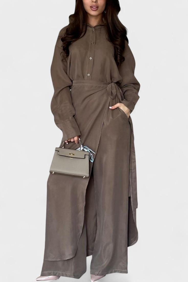Marisol-oblečení spojuje svěžest a uvolněný styl do multifunkčního celku pro každodenní nošení. Sada obsahuje volnou košili a kalhoty ve tvaru sukně, které přinášejí svobodu pohybu a pohodlí. Ideální pro jarní, letní nebo podzimní oblékání – tento outfit posouvá uvolněný vzhled na novou, moderní úroveň.